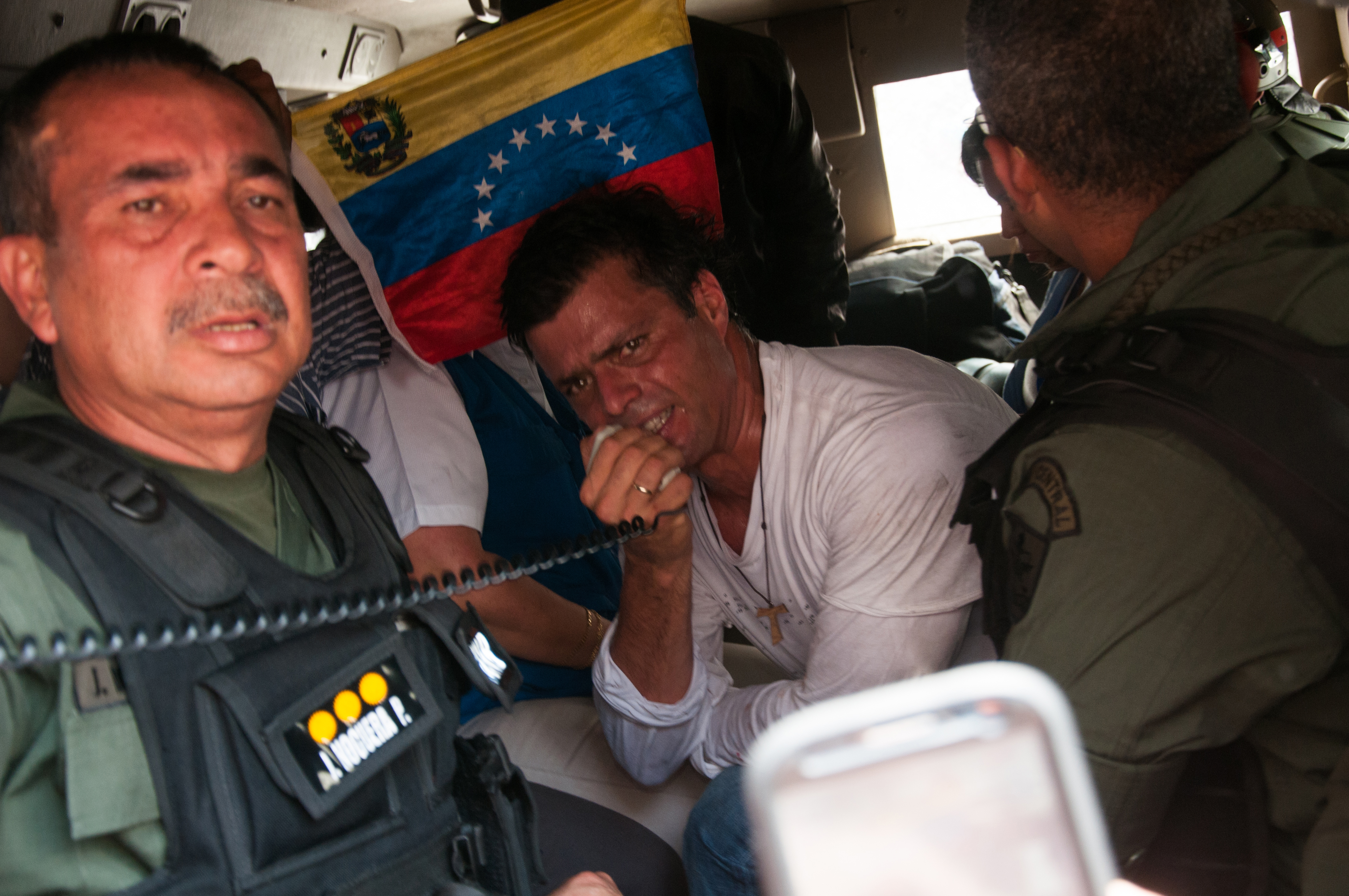 El líder opositor venezolano Leopoldo López se entregó a las tropas de la Guardia Nacional al mediodía del martes. López se entregó minutos después de terminar su discurso frente a los presentes en la marcha por las calles de Caracas. López fue trasladado a la cárcel de Ramo Verde donde pasó la noche. En un discurso […]